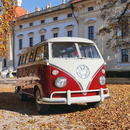 VW veterán je ideální pro plánování nevšedních dnů jako jsou svatby jen pro pár přátel a blízkých nebo menší či větší firemní večírek. Prohlídnout si vůz VW veterán je příjemným zážítkem. Zažijte styl hippies s vozem VW veteran. Minibus VW veteran je přesně pro vás! Dostatek prostoru a počtu sedadel vám umožní vzít s sebou ne jednoho, ale hned několik přátel nebo členů rodiny. Zažijte romantiku a dobrodružstí nezávislých šedesátých let minulého století.